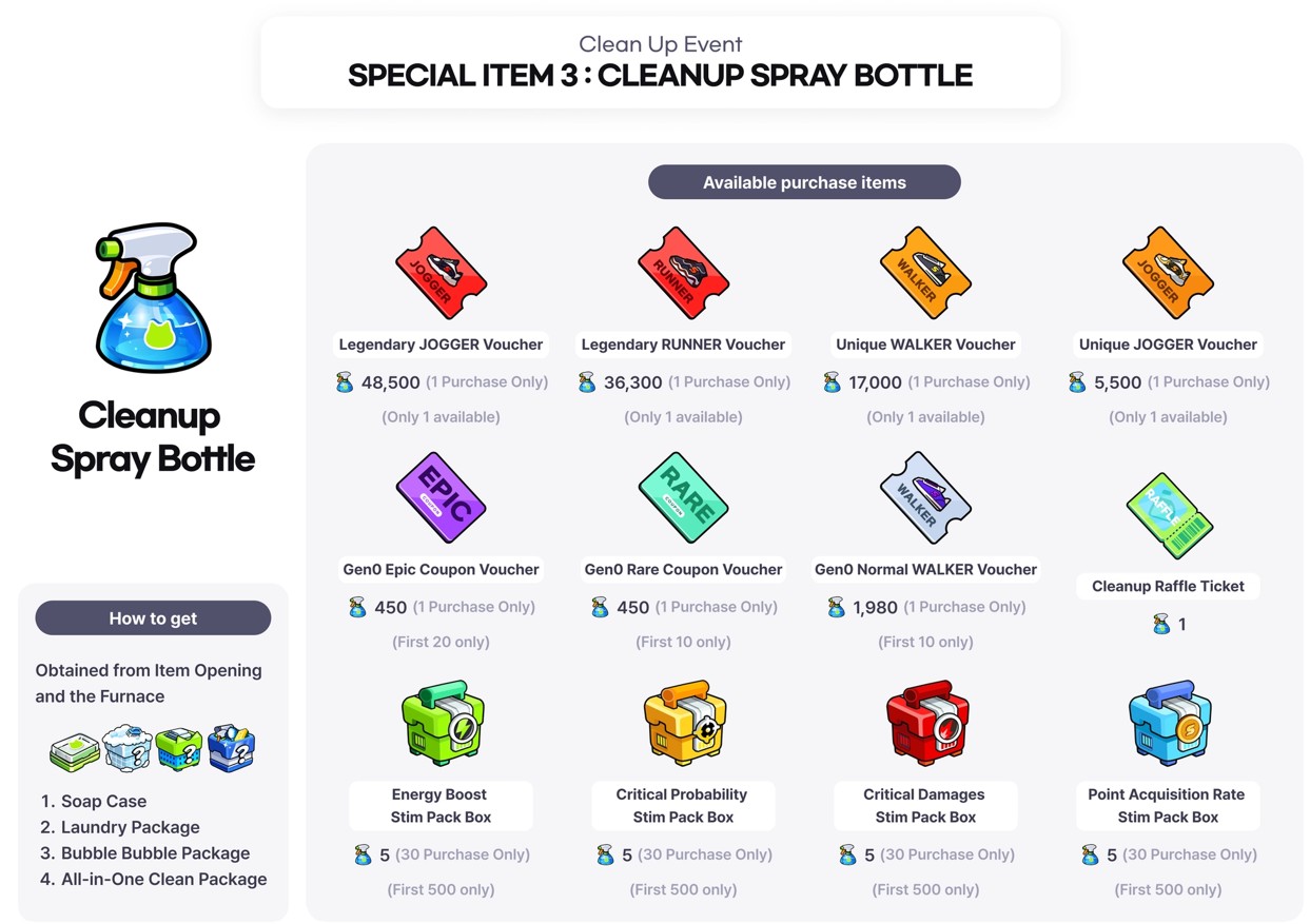 - エナジー消費時にのみ「Cleanup Detergent」を獲得できます。