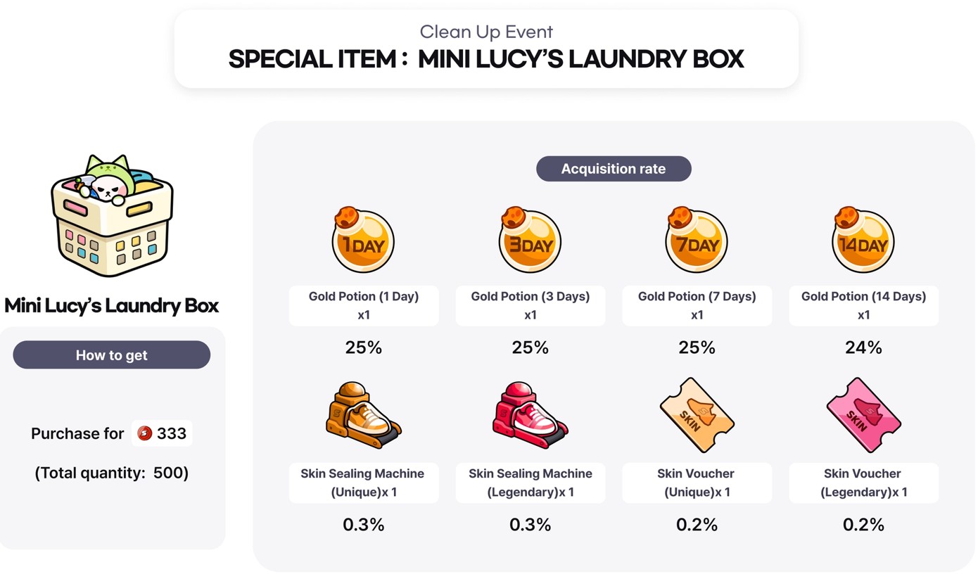 - 「Cleanup Skin Box」はアイテムマーケットで取引可能です。