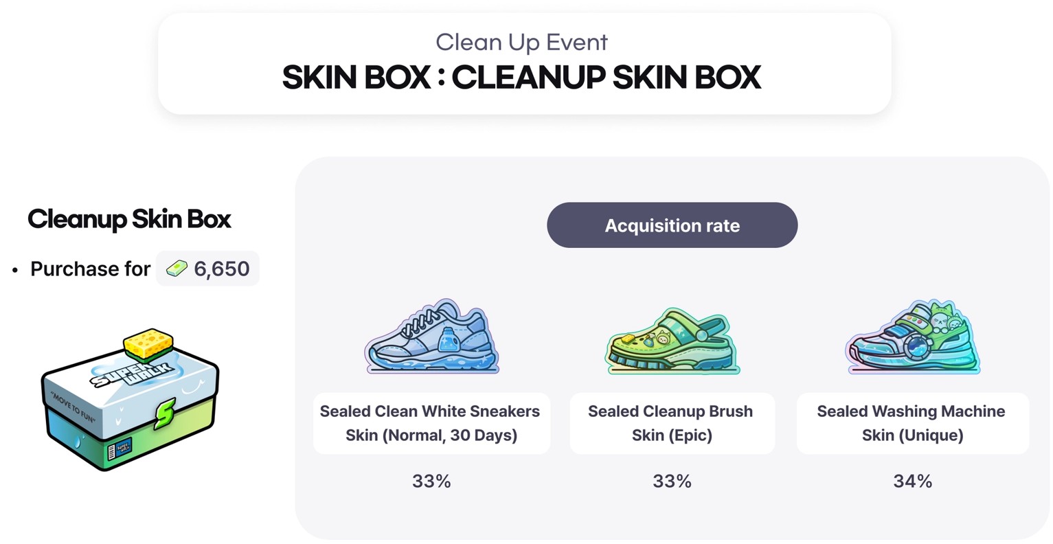 - 「Cleanup Skin Box」を開封して、様々なスキンを獲得できます。