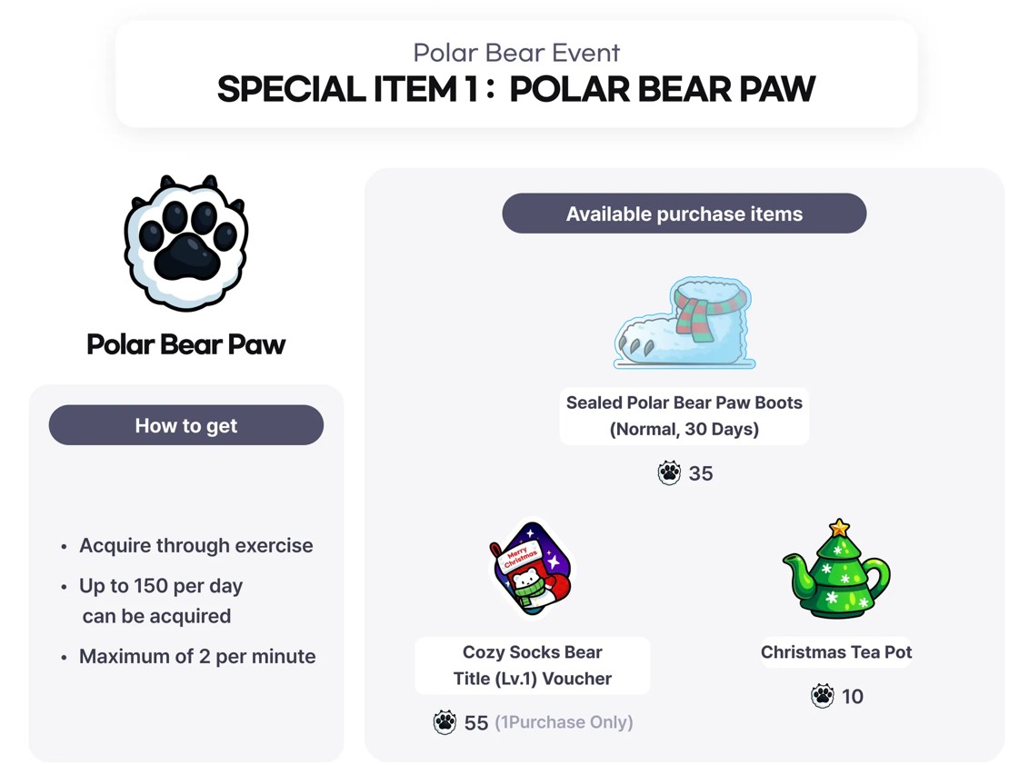 - 「Polar Bear Paw」は、一日に最大150個まで獲得できます。