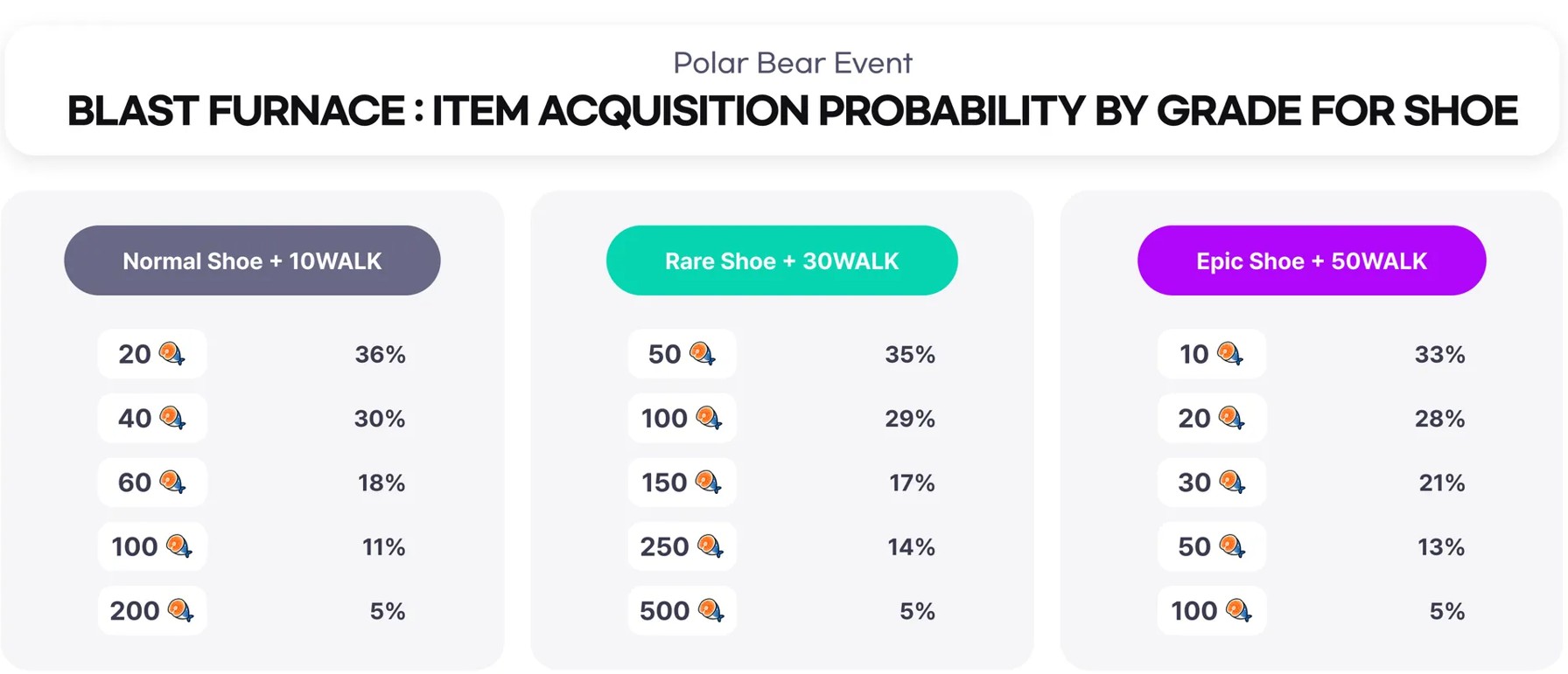 - 1.9. 溶岩炉 - 素材シューズのグレード別アイテム獲得確率