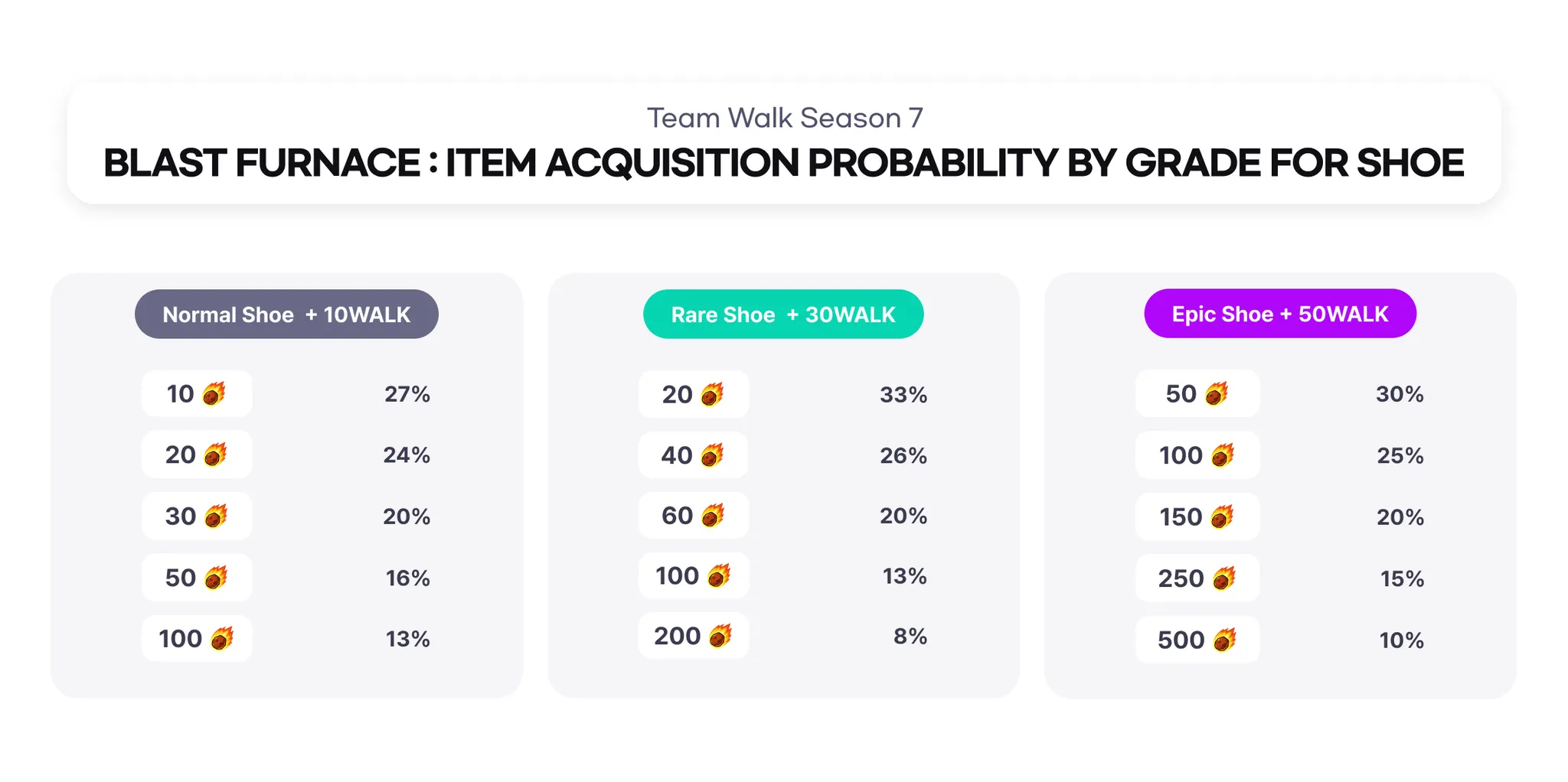 Blast Furnace(溶鉱炉) - シューズNFTのグレード別アイテム獲得確率