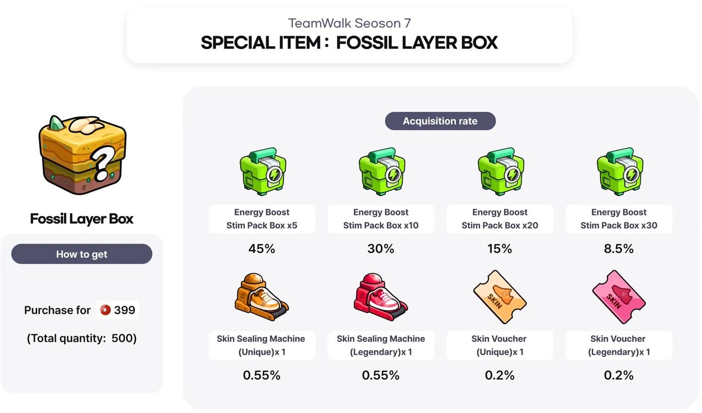 - Fossil Layer Boxは先着順での購入を通して獲得できます。