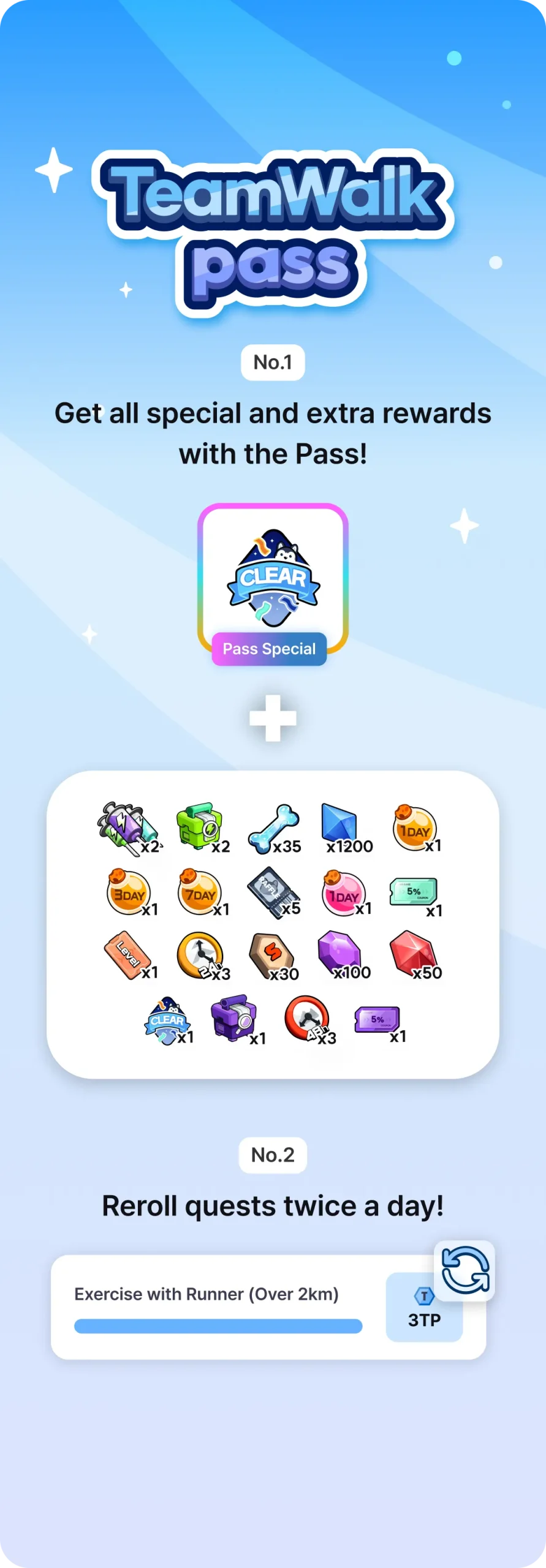 TeamWalk Passをアクティブ化して、TeamWalk Passの追加報酬とデイリークエストの変更特典を受け取ろう!