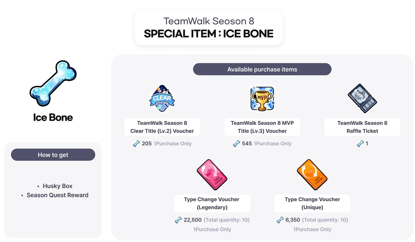 ✅Ice Boneは、TeamWalkクエスト報酬、Husky Box、イベントを通して獲得できます。
