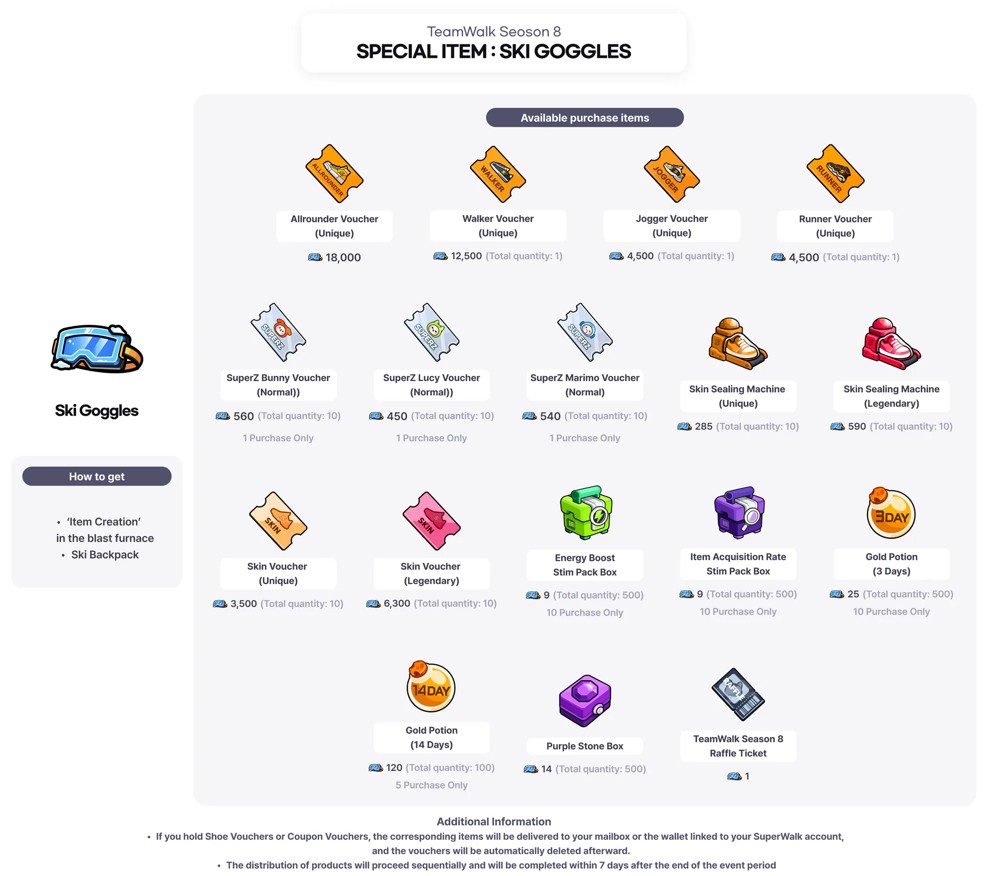≥ 490TeamWalk Season 8 Raffle Ticket X 1Gold Potion (7 Days) X 1