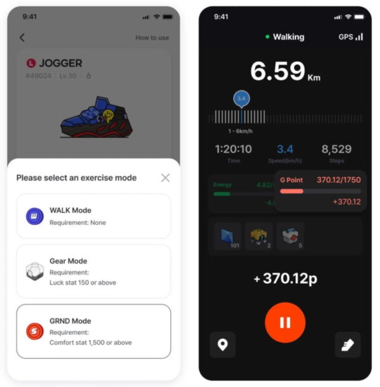 GRNDモードとは、2025年12月17日に追加された新たなるモードで、運動時にG Pointを獲得することができます。なお、G Pointは毎晩深夜0時5分にSuperWalkのガバナンストークンであるGRNDへと精算されます。