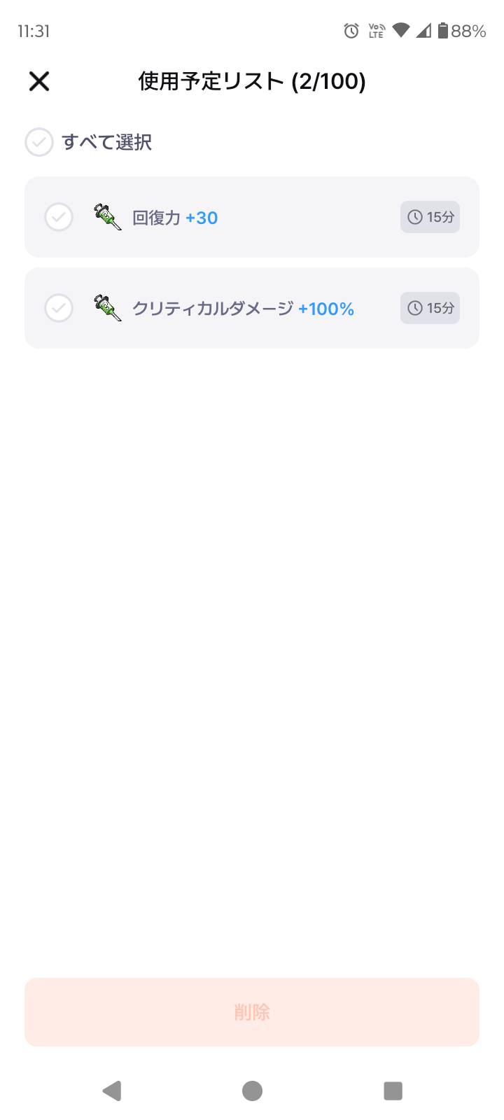 • アイテム購入後、アセット内のアイテムで「使用」を押した時点からエナジーブーストの効果が適用され、アイテムの時間制限も使用時点から計算されます。