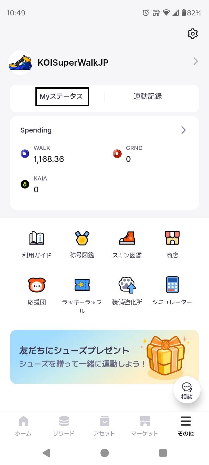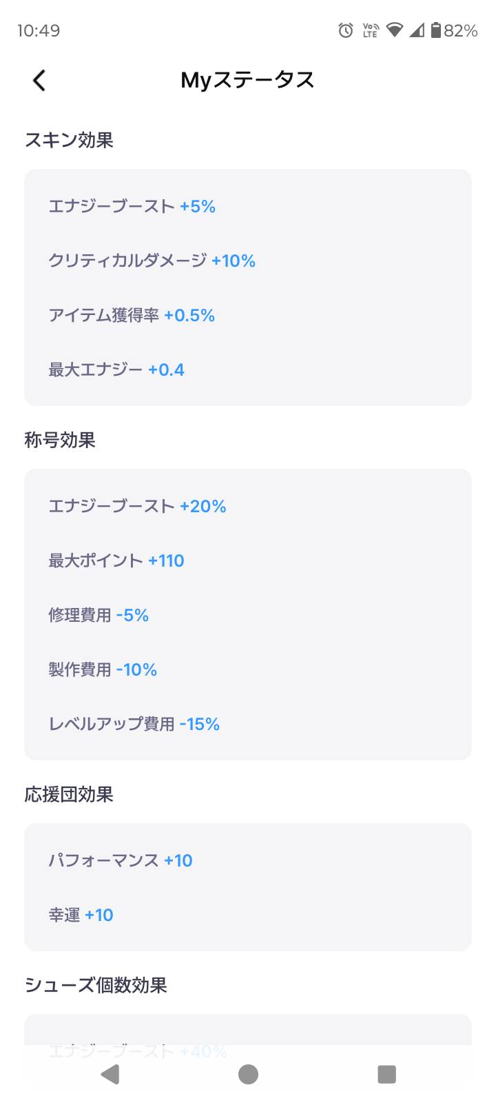 適用されているエナジーブーストの効果は、ホーム画面[その他]→[Myステータス]で確認することができます。