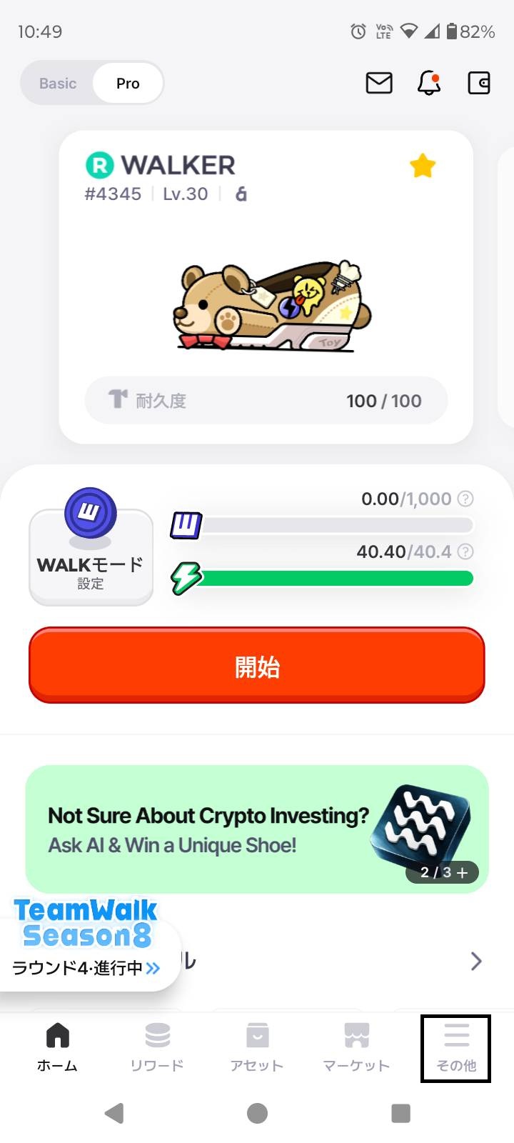 シューズNFTを保有しているプロモードのユーザーは、プレイするモードに応じてリワード(例:WALKモードプレイ時であればWALKなど)を獲得することができます。