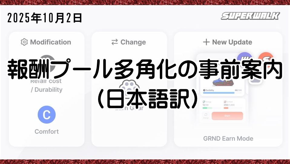 以下はSuperWalkのホワイトペーパーに掲載されている主な内容の要約ですが、その後に変更になった点も独自で付け加えています。