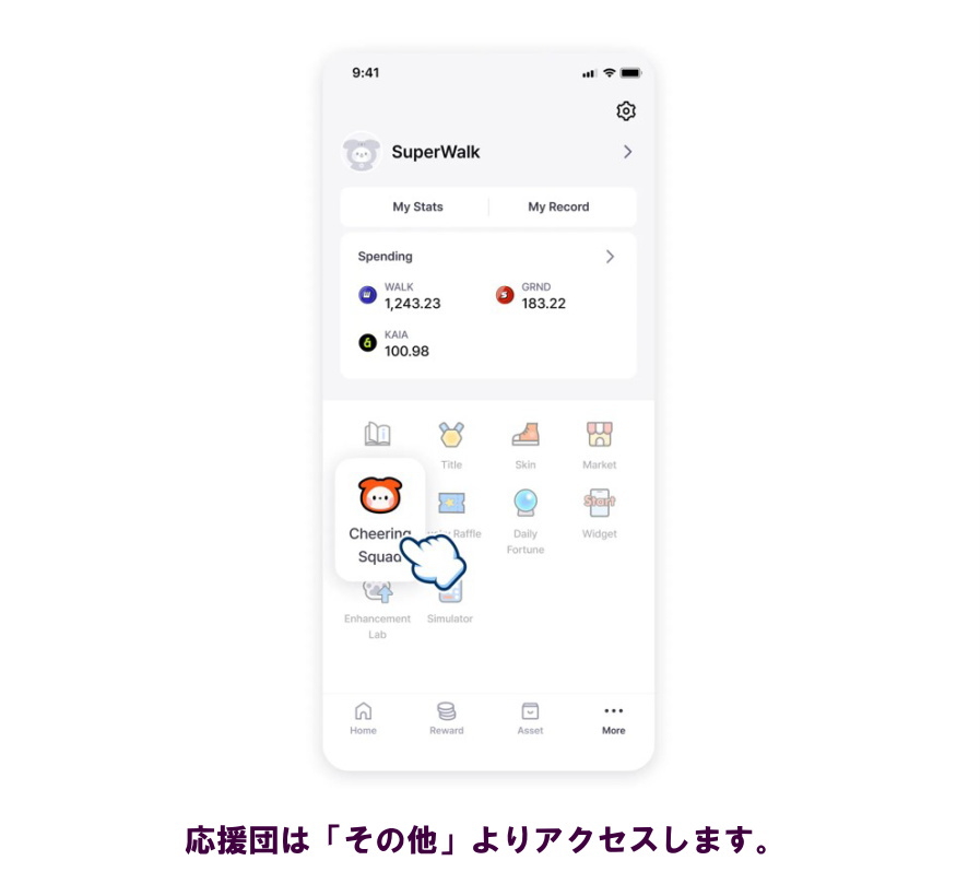 SuperZ応援団とは、2025年11月27日にそれまで運用されていた「SuperZ World」をリニューアルしてスタートしたコンテンツです。SupeZ NFT、もしくはMini SuperZを応援団に設置することで、プロモードの運動に役立つ追加のバフ効果を得られます。