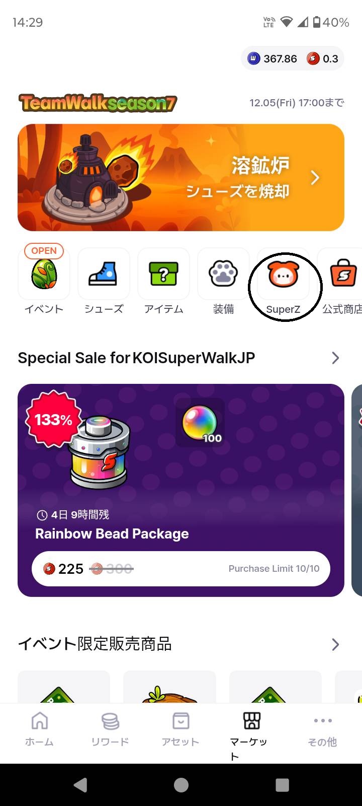 (SuperZはWALKとSWEAT、またはレベルアップクーポンのいずれかの方法でレベルアップ可能です)