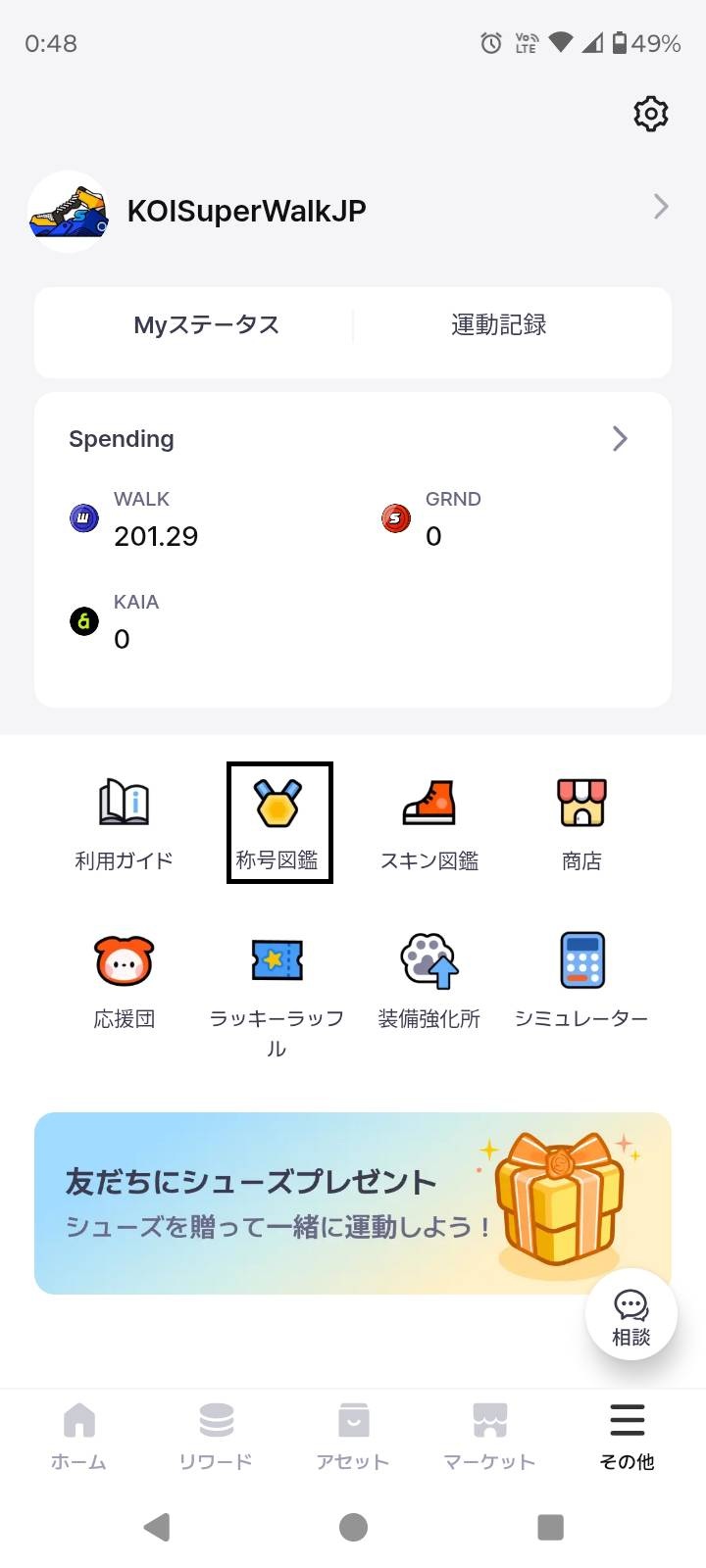SuperWalkでは、運動やアプリ内コンテンツなどの利用によって一定の基準に到達すると称号を獲得できます。