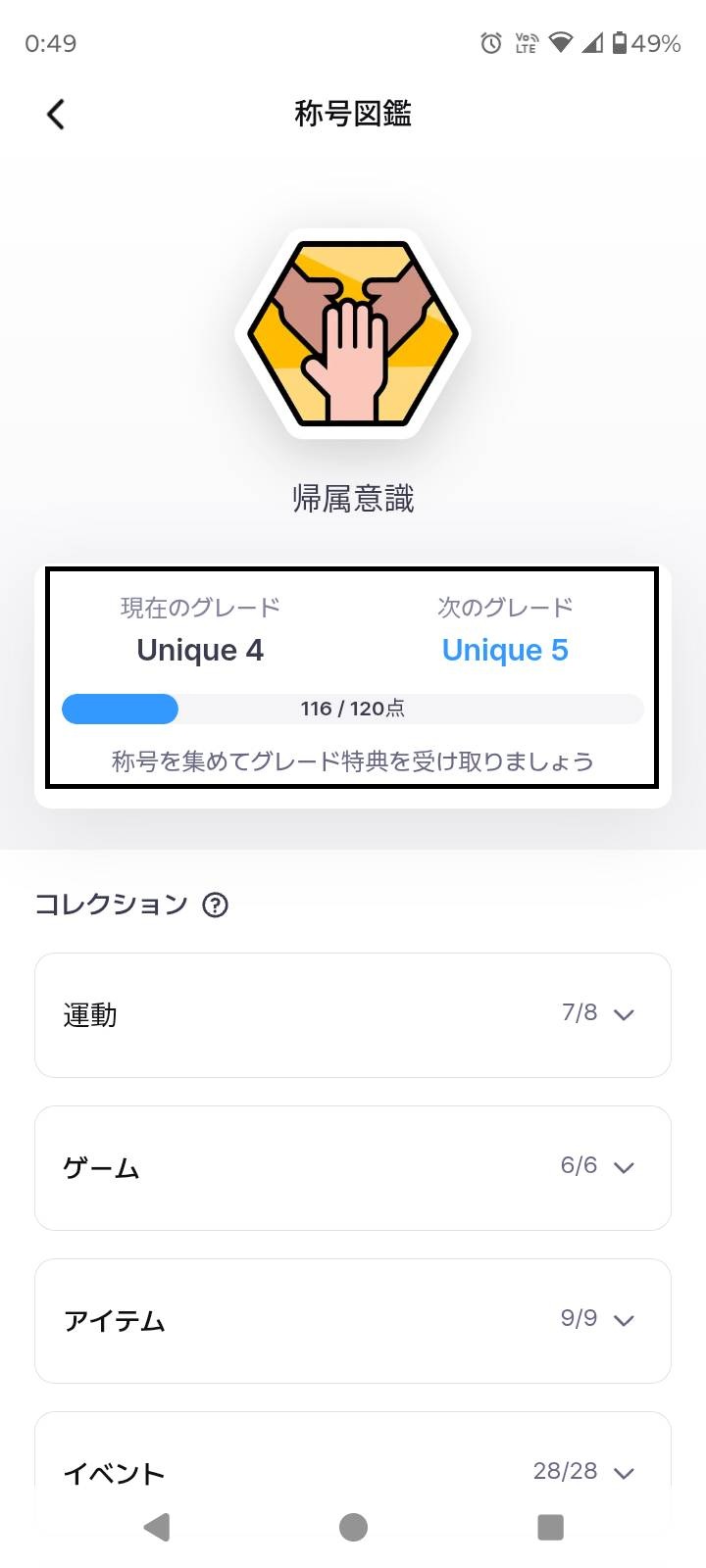 さまざまな称号を集めて合計スコアを高めることで、アカウントの称号グレードが上昇し、グレードに応じた追加の能力を獲得できます。
