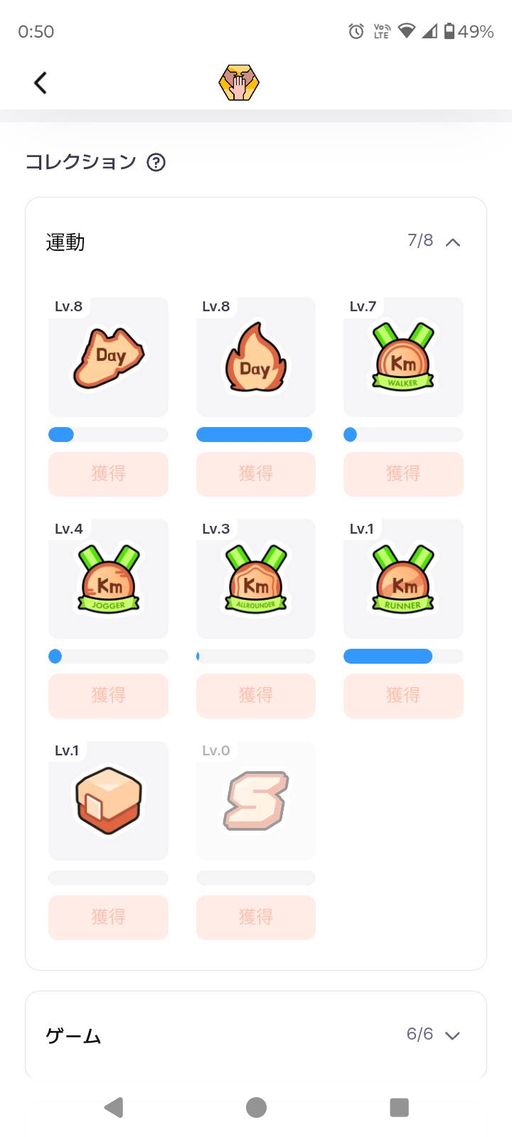 ![]() Box Hunter | 運動中に「アイテムボックス」を〇〇回獲得する | レベル1:1回 レベル2:30回 レベル3:100回 レベル4:300回 レベル5:500回 |